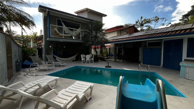 CASA ALTO PADRÃO EM CONDOMÍNIO FECHADO COM 5 QUARTOS, 4 BANHEIROS, PISCINA, ÁREA GOURMET, 4 VAGAS E 210 M². Casa assobradada em condomínio fechado perfeita para moradia ou investimento! Possui 210m² de área construída, 450m² de terreno, com 5 dormitórios sendo 2 suítes, amplos ambientes e quintal grande, Área gourmet com churrasqueira, piscina, 4 vagas de garagem. Localizada no bairro Maitinga em Bertioga/SP. O condomínio possui portaria, zeladoria, segurança e monitoramento 24hs. Possui área de lazer composta por Piscina adulto e infantil, Quadra poliesportiva, playground. Acesso rápido à Av. Anchieta e à praia da Enseada. Possui pontos de ônibus nas proximidades, farmácias, supermercados, academias, escolas, bares e restaurantes. Não perca sua chance de conhecer esse imóvel na cidade de Bertioga/SP. Entre em contato conosco e agende a sua visita!
