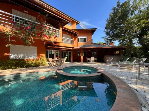 Linda casa assobradada à venda, localizada na Quadra C do Condomínio Costa do Sol em Guaratuba, Bertioga/SP. Um dos condomínios fechados mais desejados de Bertioga, ao lado do Parque Estadual da Restinga de Bertioga, cercado de Mata Atlântica nativa e uma exuberante flora e fauna silvestre, distante a menos de 500 metros da praia. Imóvel de 3 pavimentos com 326 m² de área construída em um terreno de 416 m² composto por 5 dormitórios, sendo 4 suítes; 1 banheiro social completo; ampla sala dois ambientes; cozinha americana; lavanderia; mezanino com banheiro social completo, sala intima e área técnica, piscina aquecida privativa; área gourmet com churrasqueira; totalmente mobiliada e equipada; ar condicionado e ventiladores de teto; aquecedor central servindo todos os ambientes, garagem para 3 veículos e ampla área ajardinada em toda a volta do imóvel. O condomínio conta com portaria e ronda motorizada 24h, circuito interno de monitoramento por câmeras, acesso por biometria facial e rigoroso controle de portaria, além disso a área de lazer do condomínio dispõe de associação de moradores, carregador para carros elétricos, playground, salão de festas, piscina, quadra de beach tênis na praia, praças, inúmeras áreas de convívio e extensa área de mata preservada. A menos de 15 minutos do Shopping Riviera e com fácil acesso às rodovias Rio/Santos e Mogi/Bertioga. Além de ser perfeito para moradia ou veraneio o imóvel está com documentação toda ok, permitindo financiamento. Além disso o proprietário estuda parcelamento direto com ele. Não perca sua chance de conhecer esse imóvel na cidade de Bertioga/SP. ENTRE EM CONTATO CONOSCO E AGENDE SUA VISITA!!