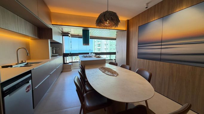 Apartamento à venda na Riviera de São Lourenço, com vista para a Serra do Mar, por R$ 3.200.000,00 - Localizado no Módulo 02 - A aproximadamente 500 metros da futura marina do Módulo 01 - 114 m² de área construída - 3 dormitórios sendo 1 suíte - 1 banheiro social - Ampla sala para dois ambientes - Ampla varanda gourmet com churrasqueira - Lavanderia espaçosa - Cozinha independente - Sacada com fechamento em vidro e persianas - Totalmente mobiliado, decorado e equipado - Ar condicionado em todos os ambientes - Móveis planejados - Bancadas em granito preto São Gabriel - Metais sanitários pretos - Lazer completo - Serviço de praia - Condomínio possui máquinas de gelo para disponibilizar aos condôminos - 2 vagas de garagem cobertas Com acesso rápido às Rodovias Rio/Santos e Mogi/Bertioga. A 5 minutos do shopping. A aproximadamente 300 metros da praia. Excelente comércio local com farmácias, supermercados, peixaria, escolas, bares e restaurantes. Perfeito para moradia, investimento ou veraneio! Não perca sua chance de conhecer esse imóvel na cidade de Bertioga/SP. ENTRE EM CONTATO CONOSCO E AGENDE SUA VISITA!!