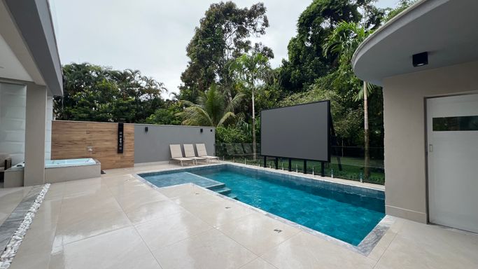 Riviera de São Lourenço, Bertioga - SP *Módulo 21 perto da praia* Linda casa em alto padrao, 5 suítes, Sala de TV com HomeTheater, Sauna, Piscina com cascata, Praça de fogo, Spa e muito mais! - 420 m² de terreno - 367 m² área construida Móveis todos planejados, Chuveiros e torneiras monocomando com aquecedor a gás, Automação total por voz ou app e câmeras de segurança, Sala de TV com HomeTheater, 100% Climatizada, 5 Vagas de Garagem (sendo 2 cobertas), 5 suítes sendo uma Suíte Master com Hidromassagem para até 2 pessoas, uma casal no térreo e +1 suíte externa para empregada, Piscina aquecida com trocador de calor, Sauna a vapor com cascata, Espaço gourmet com churrasqueira, ilha de 4 metros com chopeira e lindo pergolado de vidro, Spa aquecido para até 5 pessoas, Praça de fogo interna, Casa vai toda decorada e mobiliada com móveis planejados, Carregador para veículos elétricos já instalado, Telão de LED externo de 2x3 na área gourmet / piscina Máquina de gelo everest 500m da praia (Riviera de São Lourenço, Bertioga - SP)