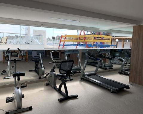 - Área de lazer conta com: piscinas adulto e infantil, piscina coberta climatizada, piscina com raia, academia, sauna, espaço gamer, salão de jogos, brinquedoteca, sala de cinema, playground, salão de festas, churrasqueira coletiva, quadra poliesportiva, mercado 24h e muitos espaços de convivência