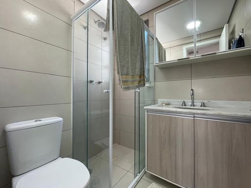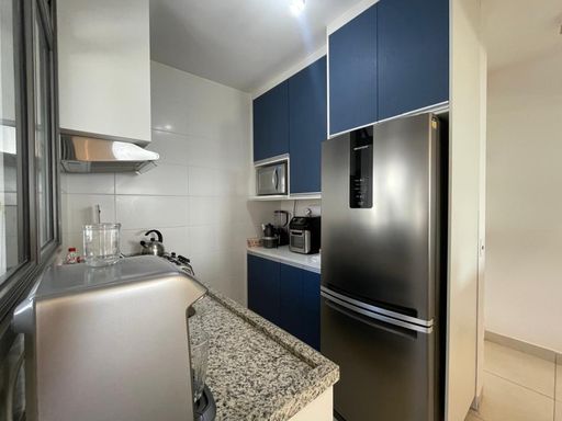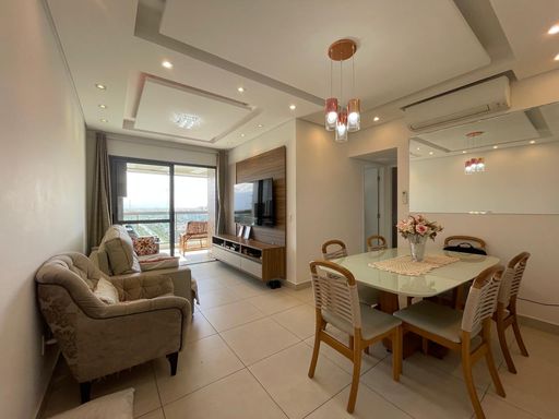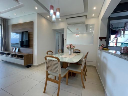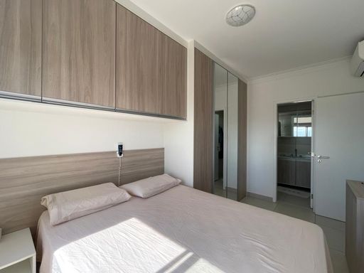 Imóvel com 76 m² de área composto por 2 dormitórios sendo 1 suíte, 1 banheiro social, sala dois ambientes, cozinha americana, móveis planejados em todos os ambientes, varanda gourmet com churrasqueira, fechamento em vidro da varanda e persianas, lavanderia, 2 vagas de garagem cobertas, totalmente mobiliado e equipado, ar condicionado em todos os ambientes.