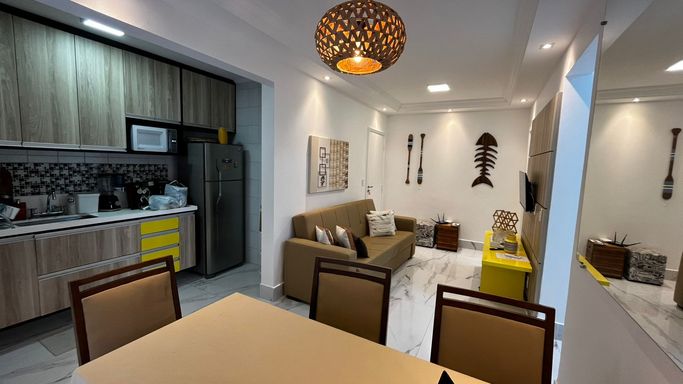 Apartamento próximo a praia com 2 dormitórios, recém reformado e todo mobiliado, ideal para moradia ou investimento.