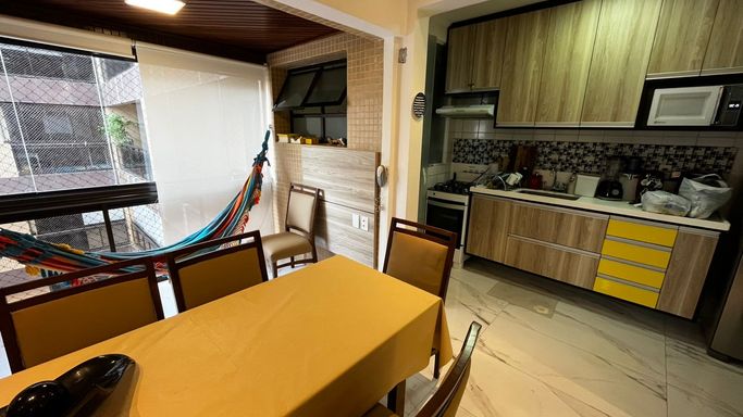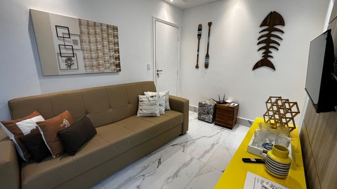 O imóvel possui 57,00 m², possui sala de estar e jantar integradas com a cozinha americana, possui 2 dormitórios sendo 1 suíte.