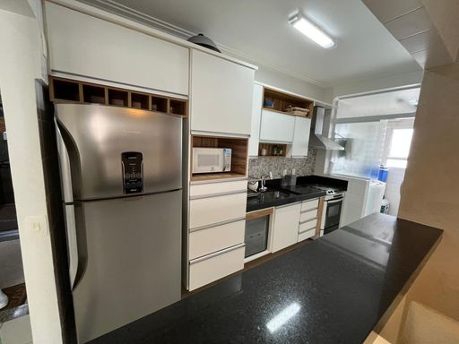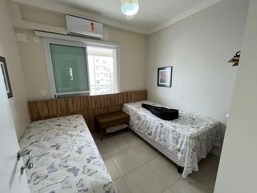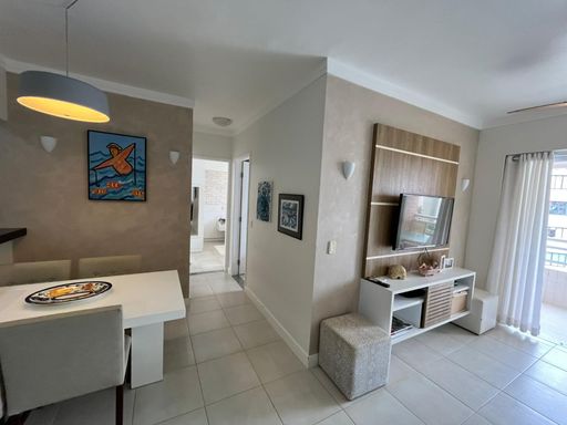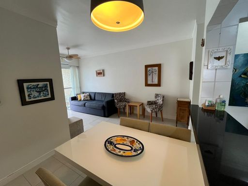 Apartamento mobiliado e equipado, climatizado com ar condicionado, possui 2 dormitórios sendo 1 suíte para locação anual, , sala de estar e jantar integradas, cozinha americana, 1 banheiro social, sacada ampla com fechamento de vidro.