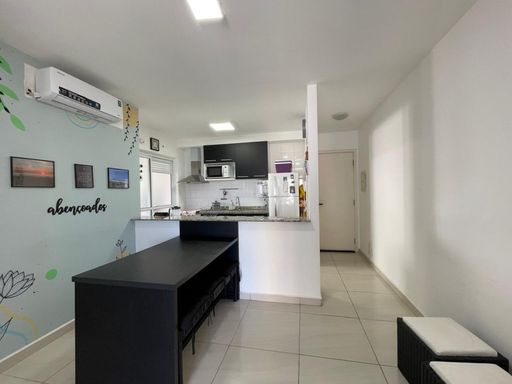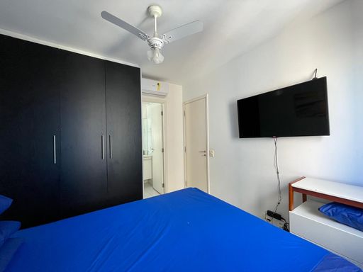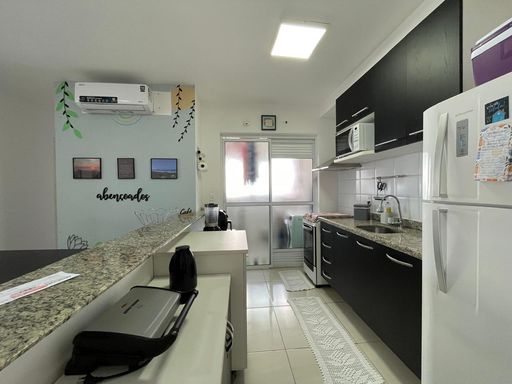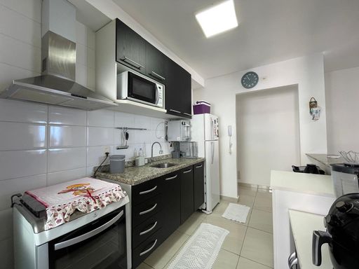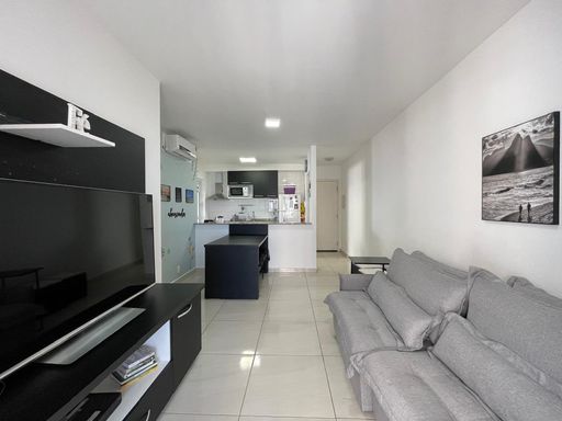 Imóvel com 75 m² composto por 2 dormitórios sendo 1 suíte, sala dois ambientes, 1 banheiro social completo, cozinha americana, lavanderia, varanda gourmet com churrasqueira, fechamento em vidro e telas de segurança na varanda e 1 vaga de garagem coberta. O apartamento é totalmente mobiliado e equipado, possui aquecedor de água, ar condicionado e ventiladores de teto.