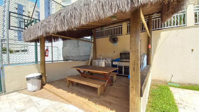 O condomínio possui portaria 24h, serviço de zeladoria, serviço de praia e disponibiliza diariamente dois sacos de gelo por apartamento, além disso sua área de lazer conta com: piscinas adulto e infantil, SPA com sauna e jacuzzi, quadra de beach tênis na praia, quadra poliesportiva com quiosque anexo com churrasqueira coletiva, academia, playground, brinquedoteca, salão de jogos, salão de festas, espaço gourmet com churrasqueira e forno de pizza a lenha, lan house e amplos espaços de convivência.