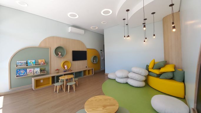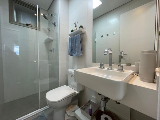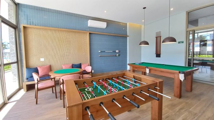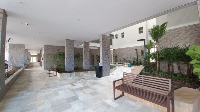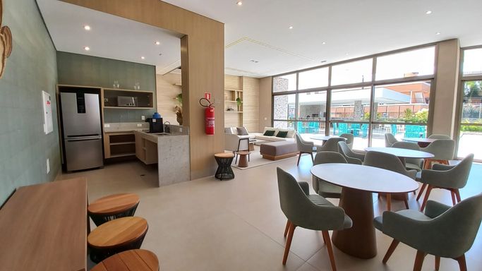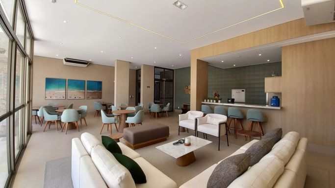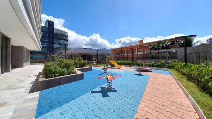 - Área de lazer conta com: academia completa, piscinas adulto e infantil, solarium, piscina coberta aquecida, quadra poliesportiva, sauna, churrasqueira coletiva, brinquedoteca, playground, salão de festas com espaço gourmet, salão de jogos, living externo, inúmeras áreas de convívio, espelho d'água e jardins internos