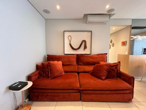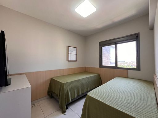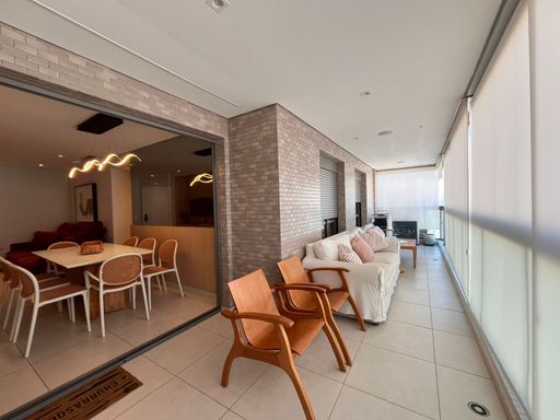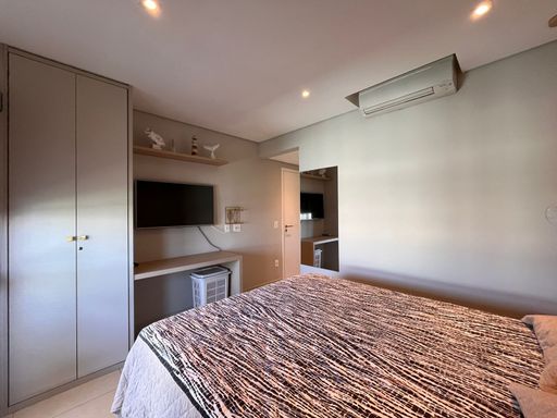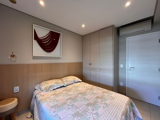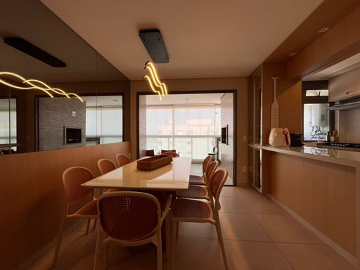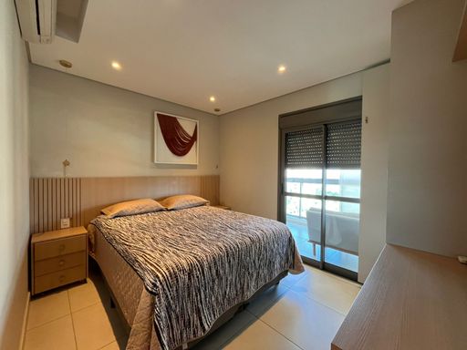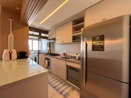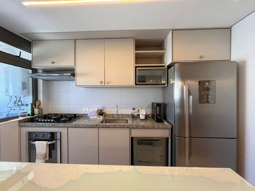 Imóvel com 95 m² de área composto por 3 dormitórios sendo 1 suíte, 1 banheiro social, sala dois ambientes, cozinha americana, móveis planejados em todos os ambientes, varanda gourmet com churrasqueira, fechamento em vidro da varanda e persianas, lavanderia, 2 vagas de garagem cobertas, totalmente mobiliado, decorado e equipado, ar condicionado em todos os ambientes.