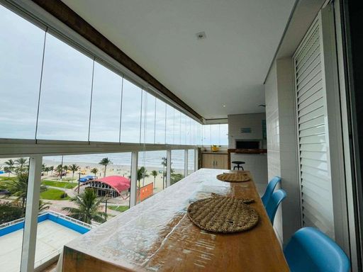- Varanda com fechamento de vidro e persianas rolô