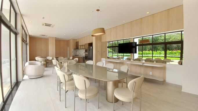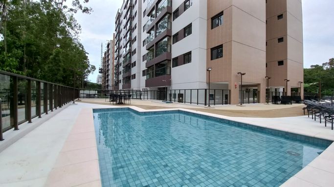 - Área de lazer conta com: piscinas adulto e infantil, piscina com raia, academia completa, sauna, sala de massagem, spa, quadra poliesportiva, playground, brinquedoteca, espaço coworking, espaço gourmet com churrasqueira, salão de festas, espaço pet, pista de agility dog, loja de conveniência 24h, lavanderia e inúmeros espaços de convivência