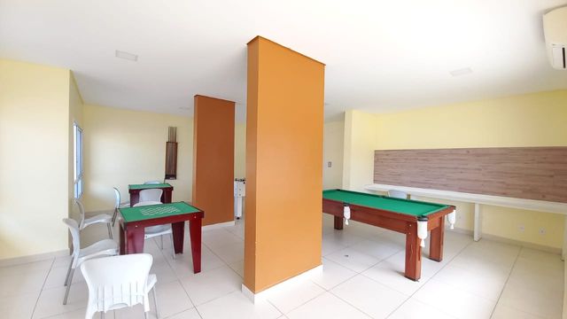 - Área de lazer conta com: piscinas adulto e infantil, piscina coberta aquecida, bar molhado, quadra de tênis, quadra poliesportiva, sauna, academia, playground, brinquedoteca, sala gamer, sala de cinema, salão de jogos, salão de festas, churrasqueira coletiva, salão de beleza, spa, espaço pet, minimercado 24h e amplos espaços de convivência