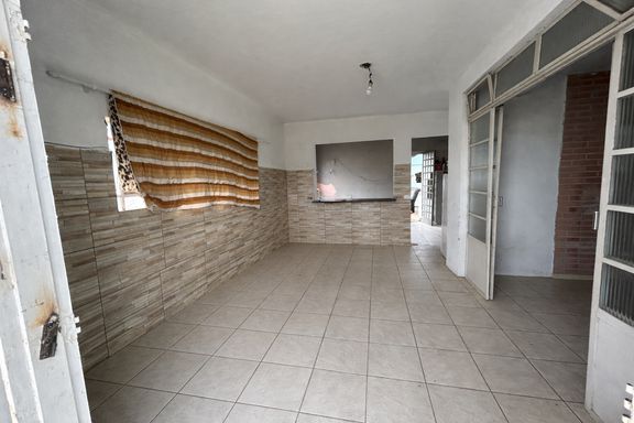Charmosa casa térrea à venda, com 2 dormitórios, 2 WC, 6 vagas e amplo quintal frontal.