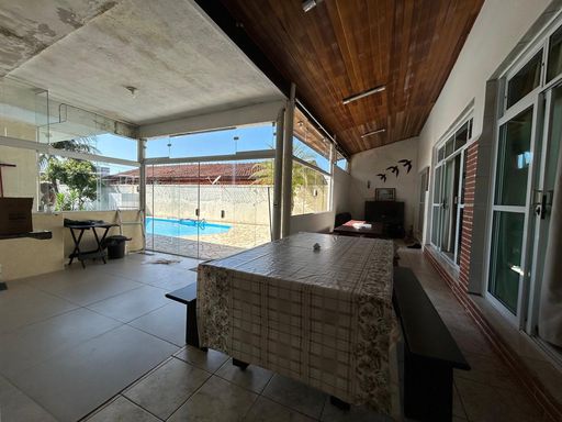 Você pode contar uma casa mobiliada, possui 5 dormitorios, área de churrasqueira e piscina, área verde e a apenas 30 metros da praia