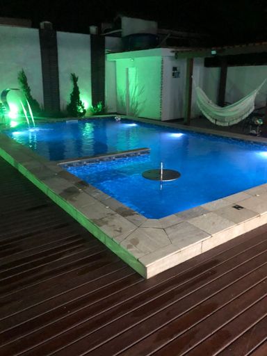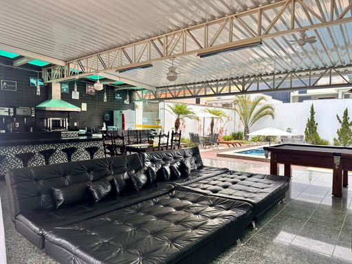 6 quartos, os 6 são suítes, 8 banheiros, área gourmet, piscina e garagem.