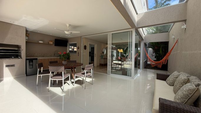 Casa à Venda com com 6 suítes, 6 banheiros e 285m² de construção e 322m² de terreno, no valor de R$ 4.850.000,00 Você pode contar uma casa mobiliada e decorada, possui 6 suítes equipadas e mobiliadas, cozinha planejada, área de churrasqueira e piscina. A casa está localizada no Módulo 18 em Riviera de São Lourenço e de fácil acesso ao Riviera Shopping.