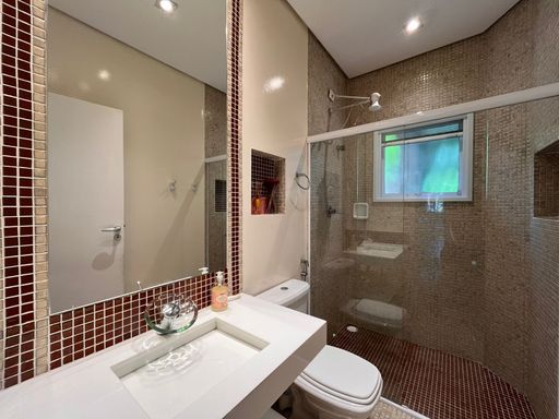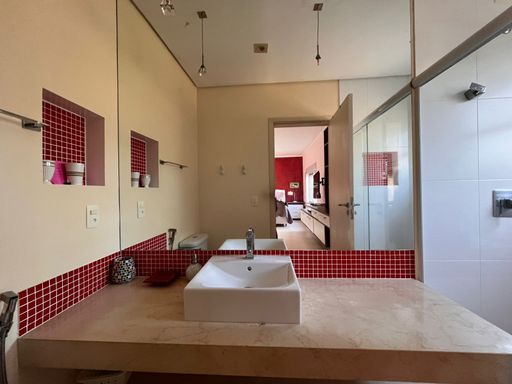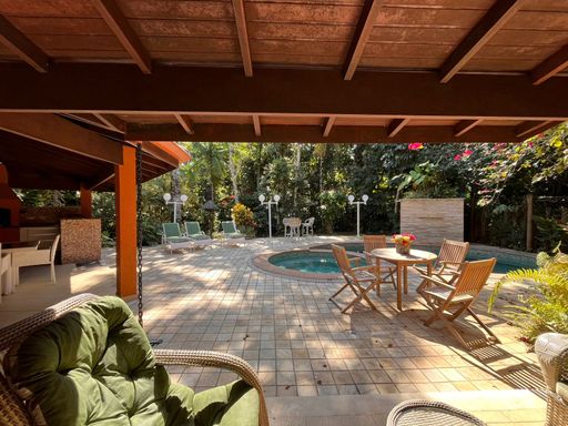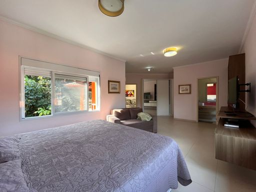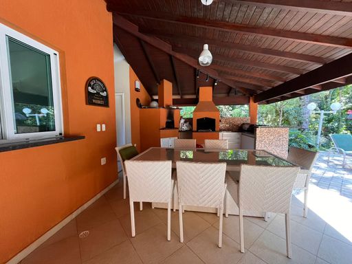 Imóvel de 3 pavimentos com 326 m² de área construída em um terreno de 416 m² composto por 5 dormitórios, sendo 4 suítes; 1 banheiro social completo; ampla sala dois ambientes; cozinha americana; lavanderia; mezanino com banheiro social completo, sala intima e área técnica, piscina aquecida privativa; área gourmet com churrasqueira; totalmente mobiliada e equipada; ar condicionado e ventiladores de teto; aquecedor central servindo todos os ambientes, garagem para 3 veículos e ampla área ajardinada em toda a volta do imóvel.