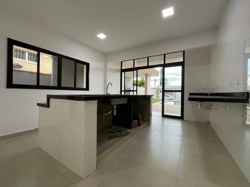 Imóvel com 115 m² de área construída em um terreno de 260 m² de área composto por 3 dormitórios sendo 1 suíte, sala dois ambientes, 1 banheiro social completo, cozinha americana com ilha e bancada em granito São Gabriel preto, bancadas dos banheiros em mármore bege, área gourmet com churrasqueira, piscina privativa, quintal gramado nos fundos, garagem para até 3 veículos.