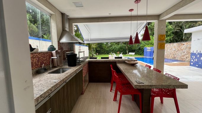 7 suítes, 9 banheiros, 1 lavabo, suíte individual para empregada. Casa localizada no módulo 22 na riviera.