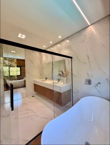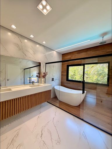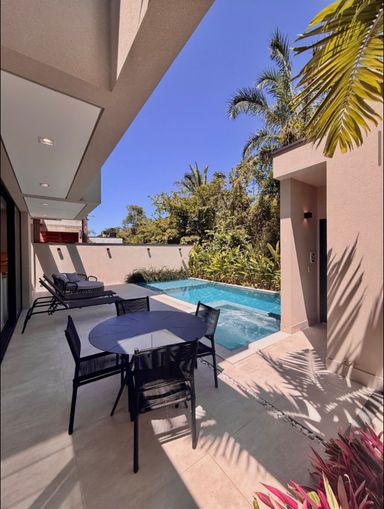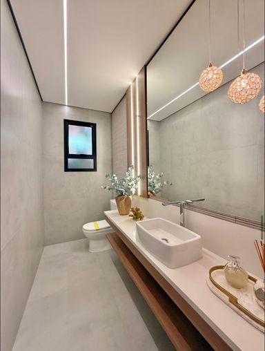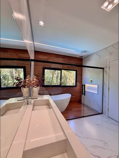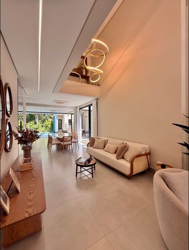 Com 399,58 m² de terreno e 315,24 m² de área construída, a casa ainda oferece 4 vagas de garagem.