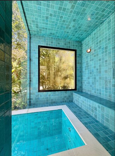 A área de lazer é espetacular, piscina monumental de 31,23 m² equipada com prainha e hidromassagem, perfeitamente integrada à sauna e ao espaço gourmet com churrasqueira.