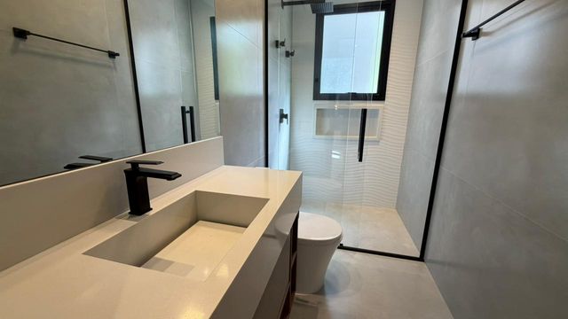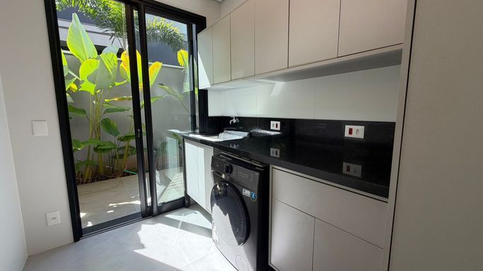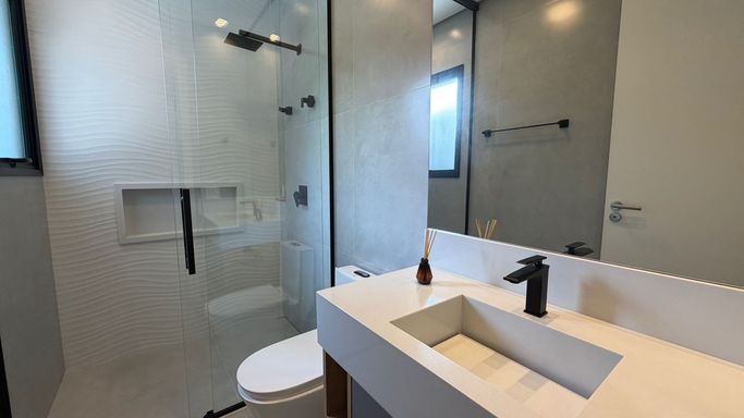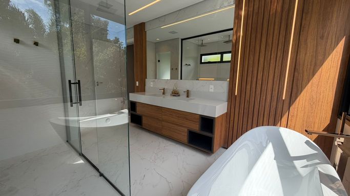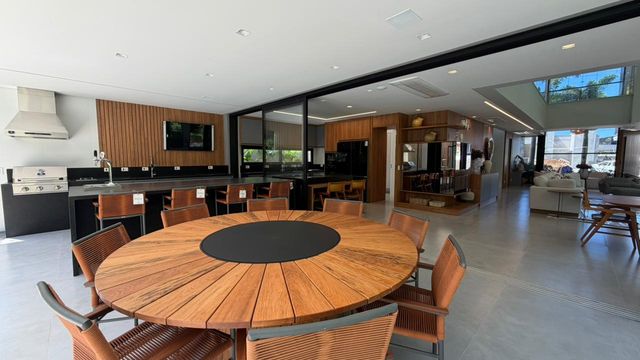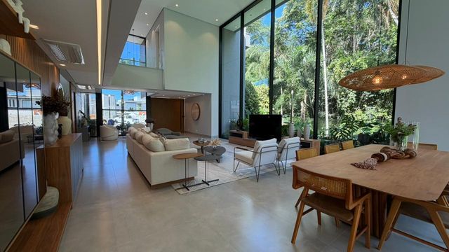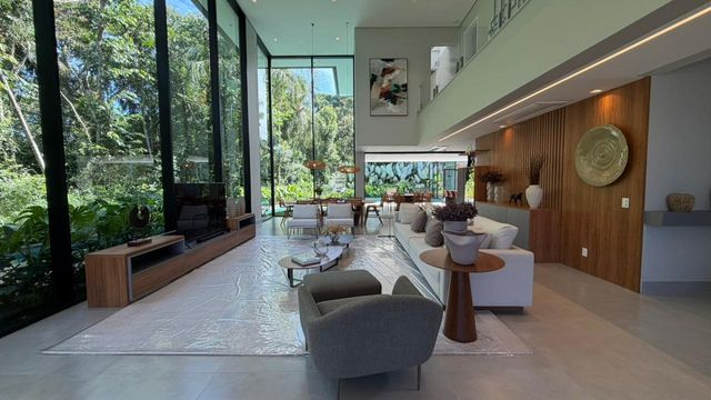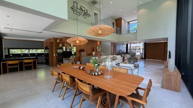 A casa conta com garagem para até seis veículos e apresenta ambientes totalmente integrados, valorizando a iluminação natural e a amplitude dos espaços. O living é um verdadeiro destaque, com um conceito inovador que inclui uma elegante banheira, elevando o nível de exclusividade e bem-estar.