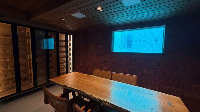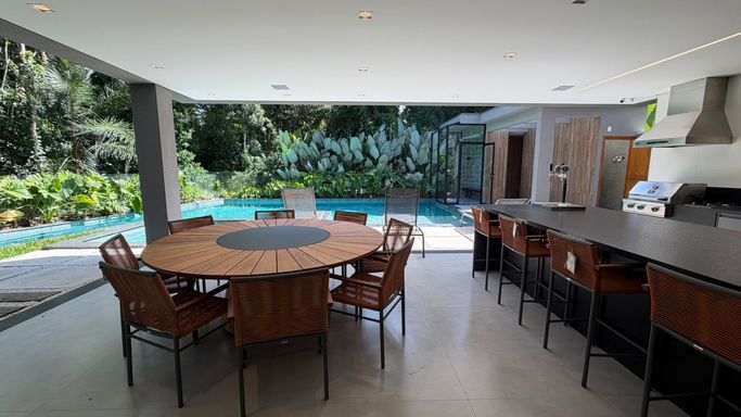 Na área de lazer, a integração continua sendo protagonista, com uma estrutura pensada para receber e proporcionar momentos inesquecíveis. Um dos grandes diferenciais do imóvel é sua exclusiva adega subterrânea, localizada sob a piscina — um detalhe único que agrega charme, sofisticação e um toque de requinte incomparável ao projeto.