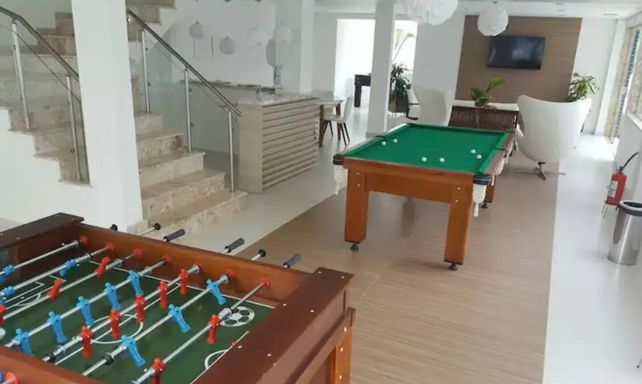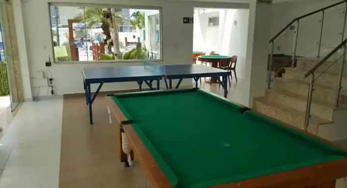 Condomínio dispõe de serviço de praia e sua área de lazer conta com: academia, piscinas adulto e infantil, piscina com raia, piscina de biribol, saunas seca e úmida, ducha escocesa, espaço zen, salão de festas adulto, salão de festas infantil, salões de jogos adulto e infantil, espaço gourmet, pista de agility dog, quadra poliesportiva, quadra de futebol, churrasqueira coletiva, brinquedoteca, pista de skate, ampla área de convivência e muito mais.