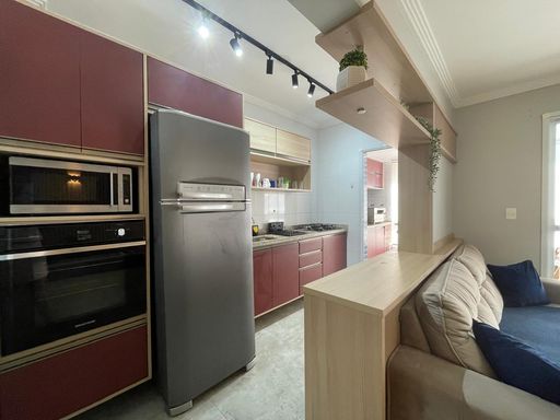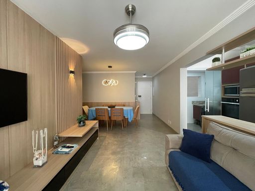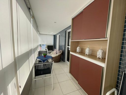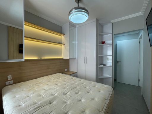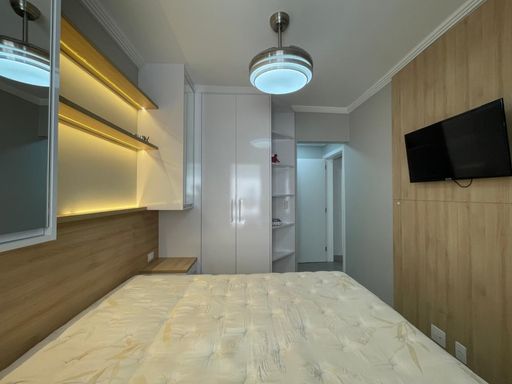 Imóvel com 88 m² composto por 2 dormitórios sendo 1 suíte, sala dois ambientes, cozinha americana, 1 banheiro social, varanda gourmet, lavanderia. Fechamento em vidro e persianas na varanda, telas de segurança, ar condicionado e móveis planejados em todos os ambientes, totalmente mobiliado e equipado.