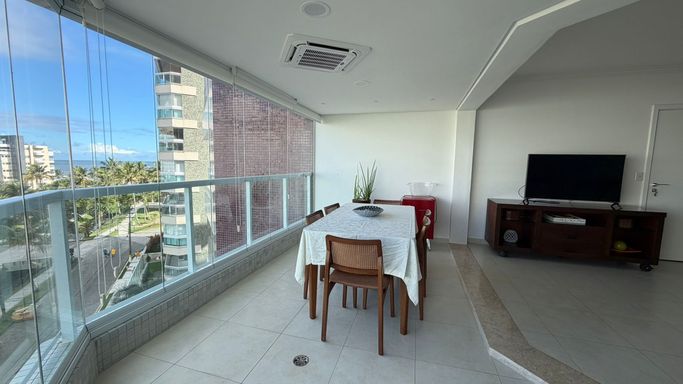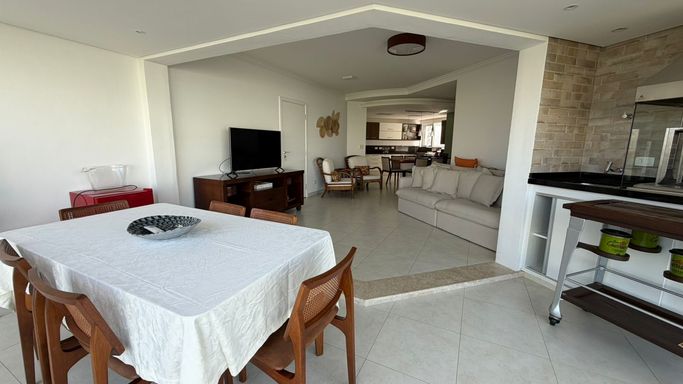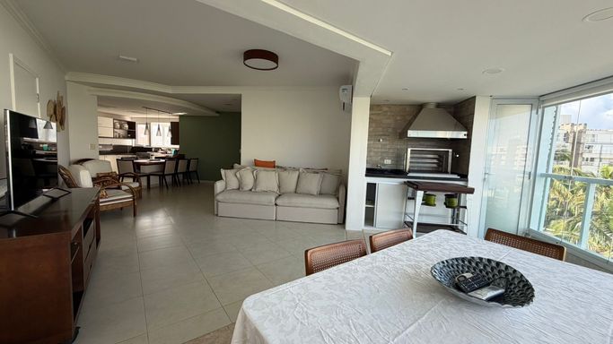 A área social é ampla e integrada, ideal para receber com charme e sofisticação, contando com uma agradável vista para o mar, que traz leveza e exclusividade ao ambiente — sem abrir mão da privacidade.