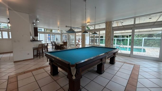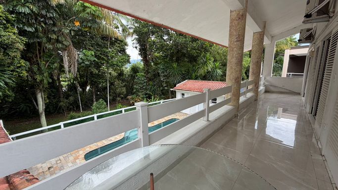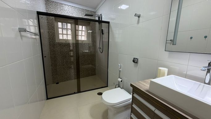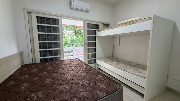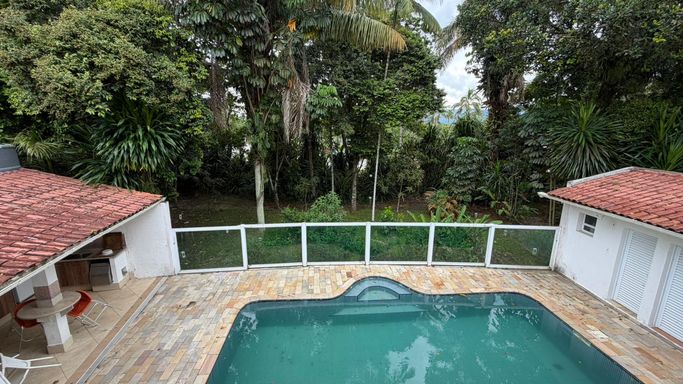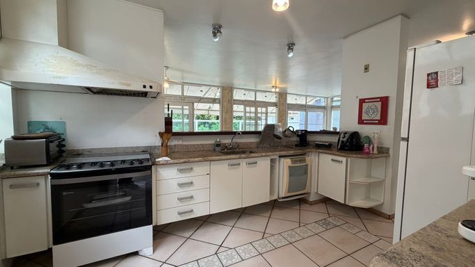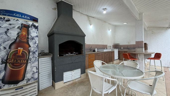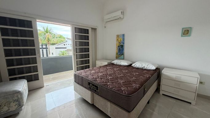 Você pode contar uma casa mobiliada, possui 5 dormitorios, área de churrasqueira e piscina, área verde com quadra de Beach tênis e serviço de praia.